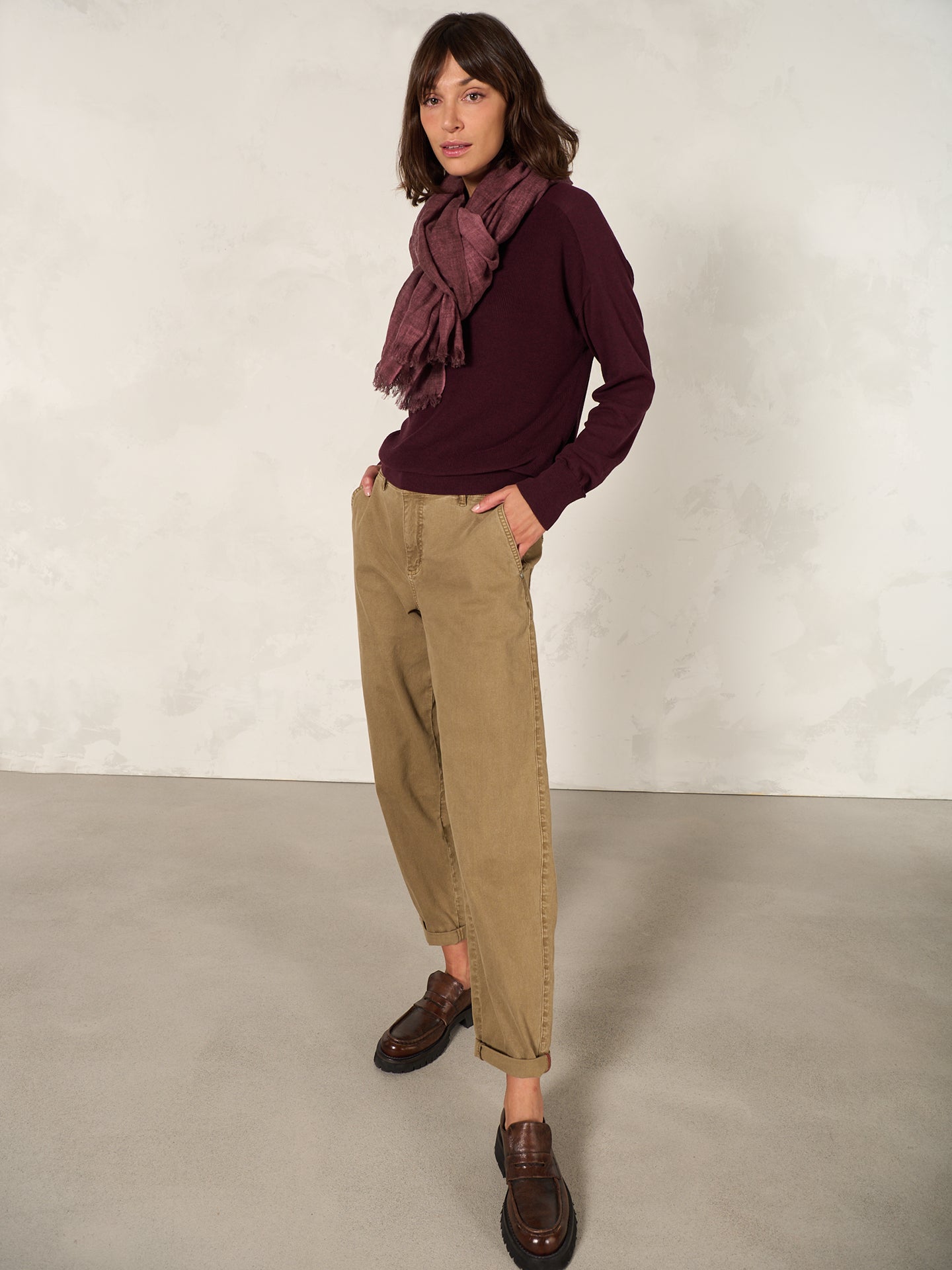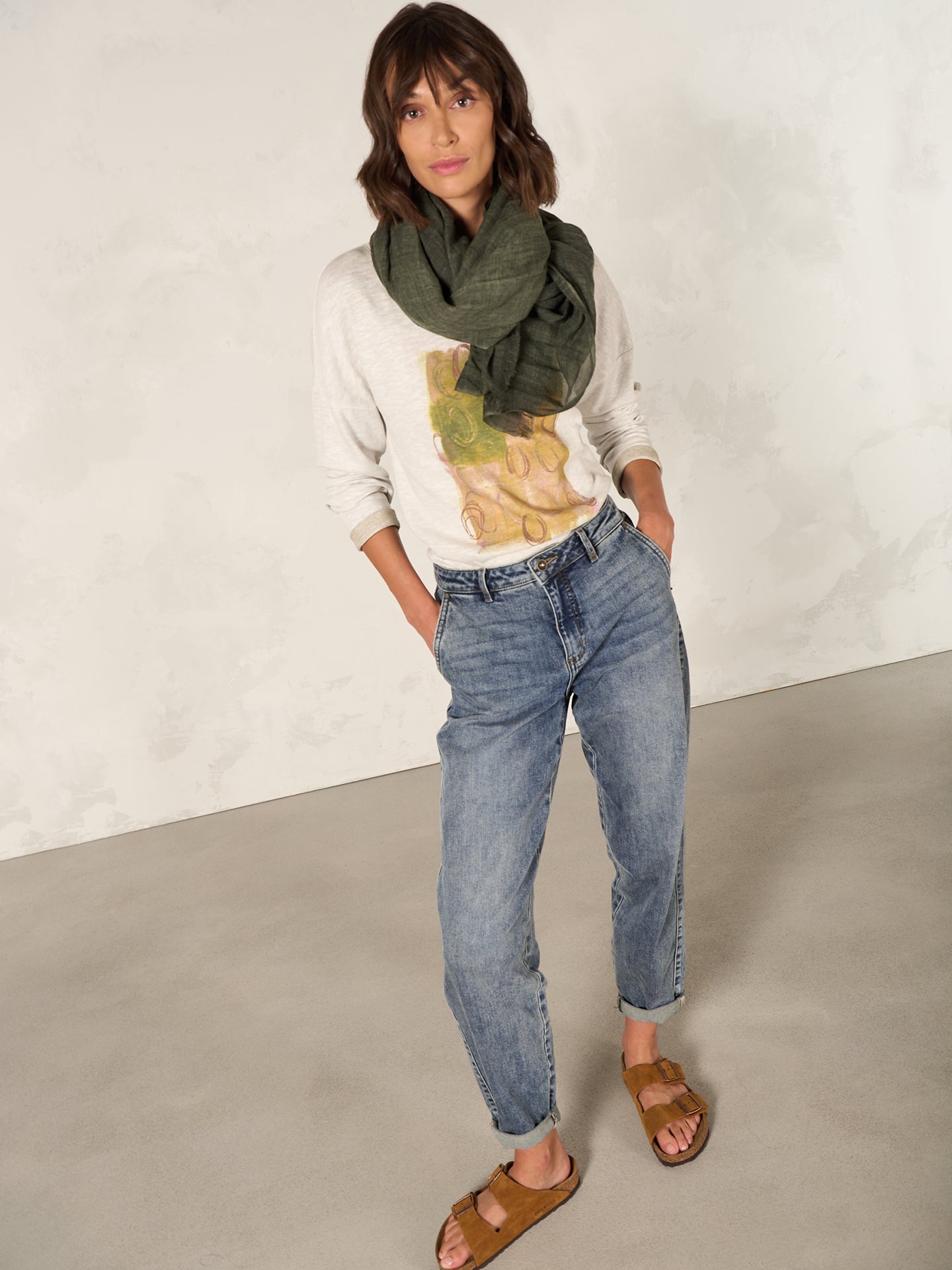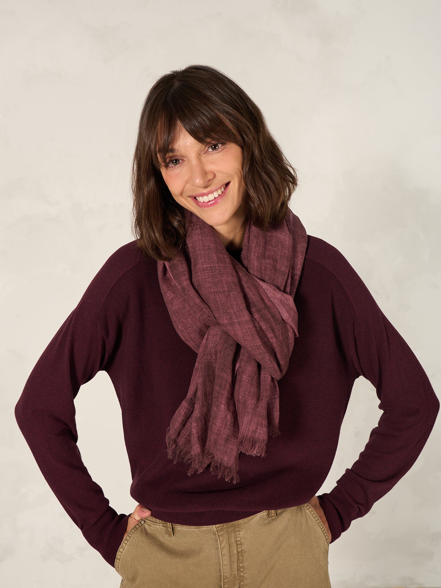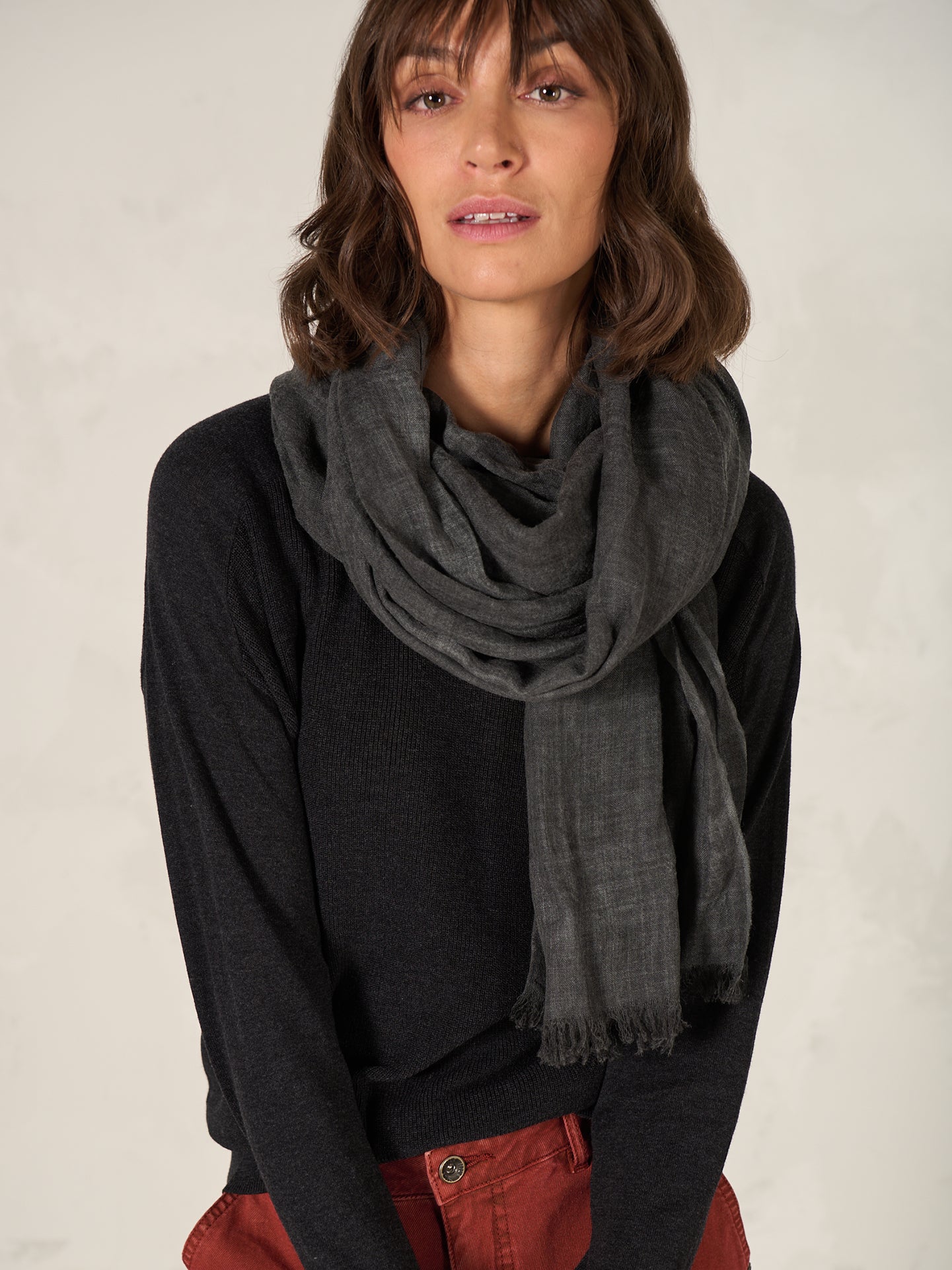 Einfarbiger Schal in der Grösse 75x200cm. 100% Wolle. Durch ein spezielles Färbeverfahren erhält der Schal einen schönen ausgewaschenen Look. Unregelmässigkeiten in der Farbe machen das Stück einzigartig. Der Ausbleicheffekt wird beim Waschen verstärkt.